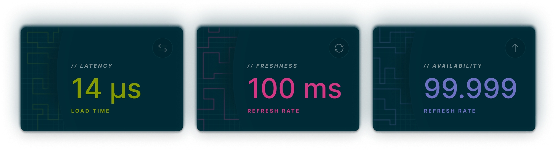 Latency, freshness, and availability are the pillars of our architecture. Kickplan is a bulletproof REST and Socket-based service that run inside your environment, wherever that is.